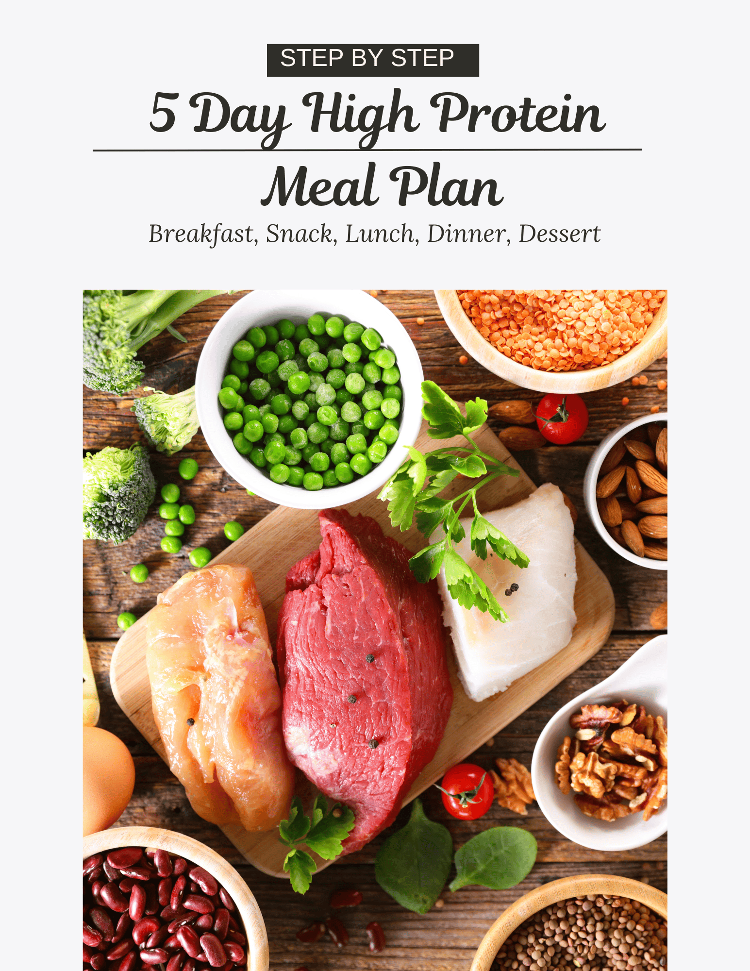 Achieve your fitness and nutrition goals with this 5-day high-protein meal plan! Each day includes 180g of protein and 2000 calories, making it perfect for muscle building, weight management, and efficient meal prep. Each recipe makes 5 servings, so you can prep once and enjoy all week—no daily cooking required!